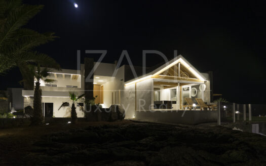 This elegant, recently built residence features a spectacular private pool and a volcanic ash garden, a hallmark of the island. Its innovative L-shaped design protects the outdoor areas from the characteristic northeast wind, creating a perfect oasis for relaxation and enjoying the sun, which is present almost year-round.